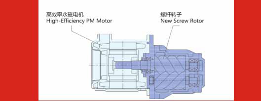 螺桿主機(jī),高效率、低轉(zhuǎn)速,轉(zhuǎn)子采用第三代5:6齒型號,型線設(shè)計(jì),低噪音,低能耗,低維護(hù)費(fèi)用,具有可靠性和使用性。永磁電機(jī)與壓縮機(jī)主機(jī)采用內(nèi)嵌式一體軸直連結(jié)構(gòu)結(jié)構(gòu)更加緊湊,傳動效率更高